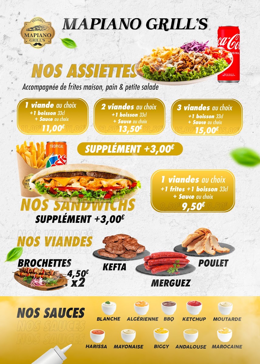 Whether craving a classic chèvre miel or a hearty four-cheese pie, the menu promises satisfaction in every bite, making Mapiano Grill's a local favorite and culinary gem in Montpellier.